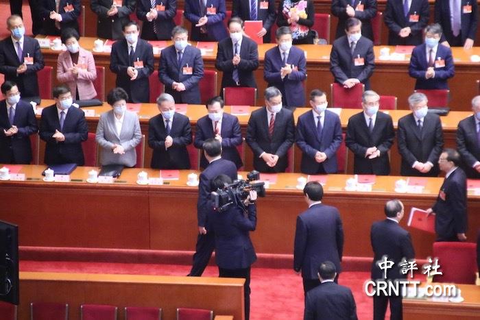 中評社北京3月12日電(記者 張爽)第十三屆全國人民代表大會第四次會議11日下午在人民大會堂舉行閉幕會,會議結束後,黨和國家領導人步出會場,國家主席習近平在路過主席台左側時,停下腳步與全國政協副主席、國務院港澳事務辦公室主任夏寶龍交談。