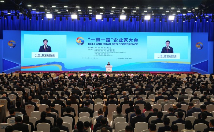 中評社北京10月18日電(中評社報導組)第三屆“一帶一路”國際合作高峰論壇於18日早上開幕,17日下午,中國貿促會、國務院國資委和全國工商聯共同舉辦在峰會期間舉辦“一帶一路”企業家大會,主題是高品質共建“一帶一路”攜手實現共同發展繁榮。國務院副總理何立峰、全國政協副主席高雲龍、香港特別行政區行政長官李家超,國務院國資委主任張玉卓以及很多中外工商界代表都出席了大會,中國國際貿易促進委員會會長任鴻斌為大會主持人。