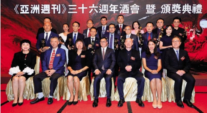 | 圖:《亞洲週刊》36周年酒會暨頒獎典禮昨日在港舉行。圖為主禮嘉賓以及各獎項的機構代表合照。(圖源:大公報) |