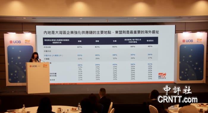 中評社香港1月10日電 (記者 盧哲)香港貿發局與大華銀行(香港)9日舉行發佈會,聯合發表《大灣區供應鏈多元化:聚焦東盟、香港和內地的聯通性》研究報告。報告結果顯示,超過九成受訪大灣區製造業的企業已經完成或正進行供應鏈轉型。大多數大灣區企業正積極擴展生產基地,主力在內地擴充生產設施,以強化供應鏈韌性。海外方面,則東盟是大灣區企業實現供應鏈多元化的首選。