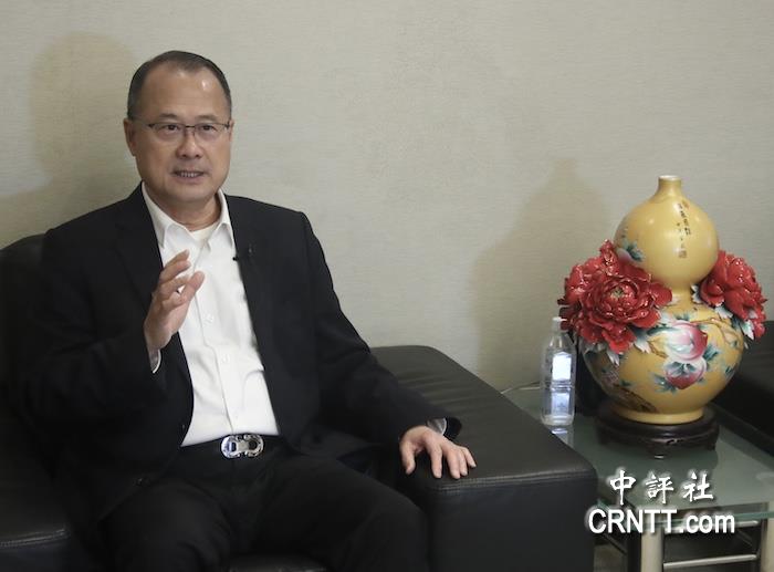蔡冠深回答中評社記者的問題(中評社 郭至君攝)