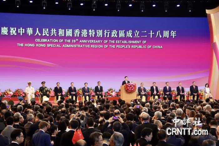 中評社香港7月2日電(記者 盧哲)香港特區政府1日在香港會議展覽中心舉行香港特別行政區成立二十八周年酒會。香港特區行政長官李家超在酒會致辭時表示,香港正值經濟轉型期,面對著挑戰和機遇;在“一國兩制”之下的優勢,香港機遇大於挑戰。展望未來,重點工作會在三方面:一是以高水平安全護航高質量發展;二是加快發展北部都會區;三是著力改善民生。他強調,寧願做艱難的改革者,不能做安逸的停滯者。