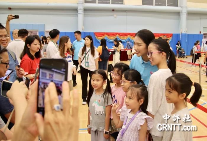 中評社香港8月4日電(記者 盧哲)8月3日是香港“全民運動日2025”,康文署多個康樂設施免費開放。巴黎2024奧運會女子重劍個人賽金牌得主江旻憓當天與香港特區行政長官李家超等當天到九龍公園體育館與市民一同運動,向巿民傳遞勤做運動有益身心的信息。中評社記者在現場看到,江旻憓的人氣仍與奧運奪冠時一樣高漲,從兒童到長者都紛紛前來合影,而江旻憓也保持“微笑劍后”的招牌微笑,來者不拒。