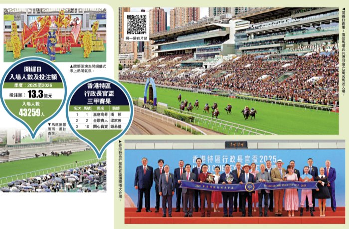 中評社北京9月8日電/據大公報報導,2025至2026年度香港賽馬季上周日(7日)在沙田馬場開鑼,行政長官李家超主持醒獅點睛及敲鑼儀式。即使昨日大部分時間懸掛3號強風信號,且不時下起大雨,但沙田馬場及跑馬地馬場合共逾4.3萬名馬迷入場,當中內地及海外旅客逾7000人,全日投注額13.3億元,丁財兩旺。李家超在個人社交媒體發文表示,政府會聯同馬會進一步推廣賽馬旅遊,為旅客創造沉浸式的體育旅遊體驗,並鼓勵業界設計包含賽馬體驗的高質旅遊方案,令更多高增值旅客感受香港歷史悠久的賽馬文化。