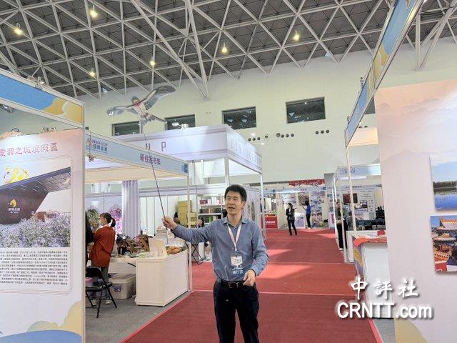 高雄市旅行公會冬季國際旅展有設攤介紹北京景點,國家級非遺“曹雪芹風箏”第四代傳承人繆伯剛在場解說,並介紹“沙燕風箏”是北京傳統風箏典型樣式。(中評社 蔣繼平攝)