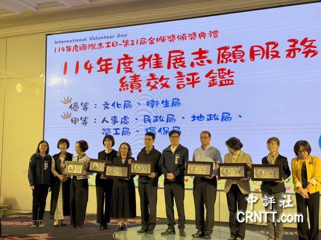 高雄市政府4日在林皇宮宴會館舉辦“金暉獎”表彰志工無私奉獻精神,並響應12月5日國際志工日。高雄目前擁有超過1300支志工隊、逾11.7萬名志工投入多元領域服務。第21屆金暉獎頒發績優人員、團隊、企業及家庭等共37個獎項。