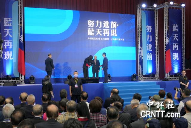 前主席吳伯雄緩緩走上舞台準備監交。(中評社 張嘉文攝)