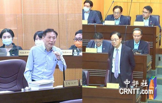 桃園市議員詹江村質詢桃園市長張善政。(中評社 盧誠輝攝)