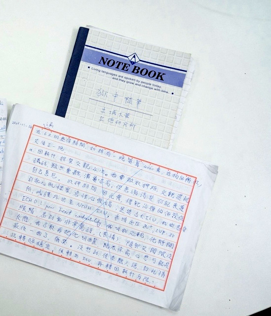 柯文哲解釋,柯文哲在北所閱讀大量書籍,遇到看不懂的段落,就先用紙筆記錄下來,等出所後再逐一用電腦查詢,“以前我們會用Google查,現在他都是用AI查。他會坐在電腦前,把北所裡看不懂的地方請AI教他,等完全懂了,他就會把筆記劃掉。”因此筆記裡大量的劃線,正是他學習完成的標記。外界以為柯文哲只是“隨便玩AI”,甚至有人質疑AI回答未必正確,“但他不是在玩,他是真的有上進心。”她強調,柯文哲看書不是隨便翻過,而是會把知識“化成自己的東西”,反覆理解、整理、吸收,“這十本筆記就是最好的證明。”