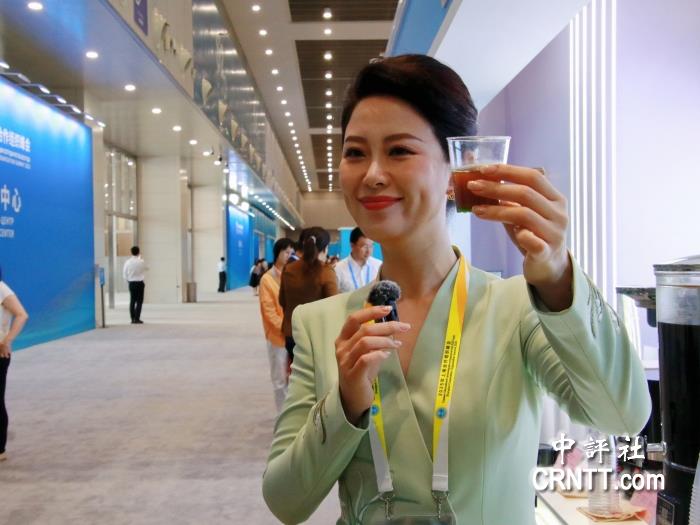 不少記者被這“中外結合”的配方吸引,一位記者主動上前詢問:“味道會不會很奇怪?”在工作人員調配時,能看到翠綠的藿香水在加入氣泡水後泛起泡沫,最後淋上深棕咖啡,單是視覺效果就十分吸睛。