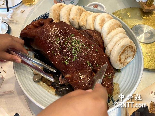 中評社北京8月29日電(記者 盧誠輝)北京石峽村內有一間古堡客棧,招牌菜主打百年傳承的賀氏醬豬臉“石烹宴”,搭配北京市延慶區的傳統火勺,再加上能在如詩如畫的石峽村內享用大餐,讓饕客吃得相當過癮。