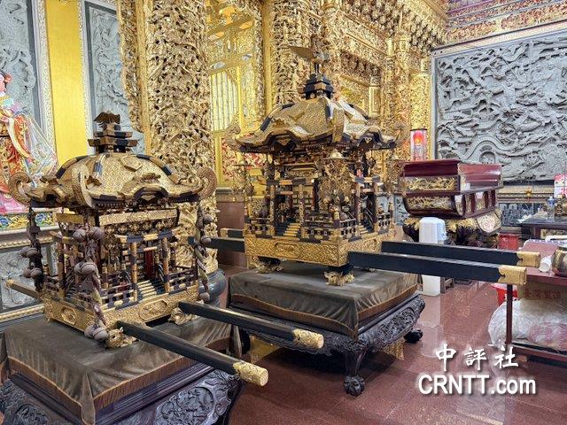 高雄岡山壽天宮內有兩座華麗的黃金天照大小神轎。(中評社 蔣繼平攝)