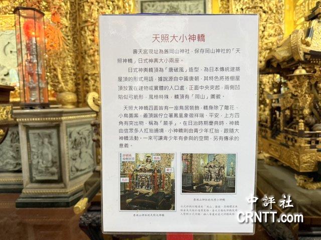 高雄岡山壽天宮立牌介紹這裡過去曾是岡山神社,因此保存部分神社文物。(中評社 蔣繼平攝)