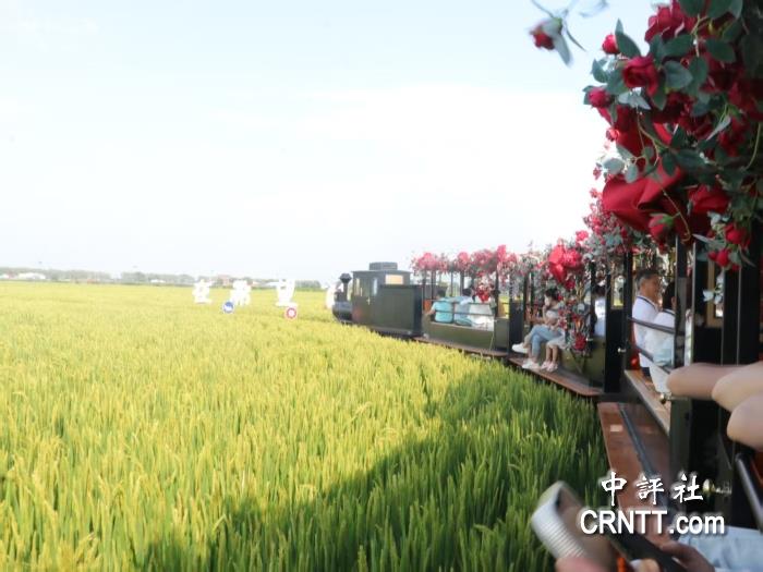 記者們乘坐觀光小火車在田間穿行(中評社 陳思遠攝)