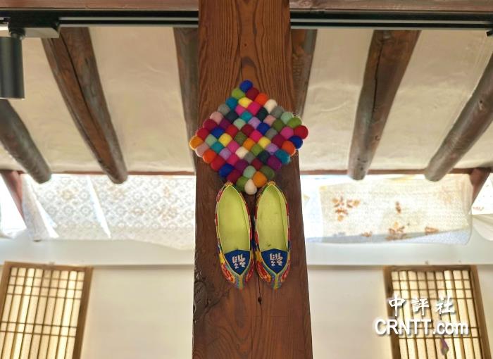 校村三百年家內部,可愛的“福福花鞋”裝飾。(中評社 崔銀珍攝)