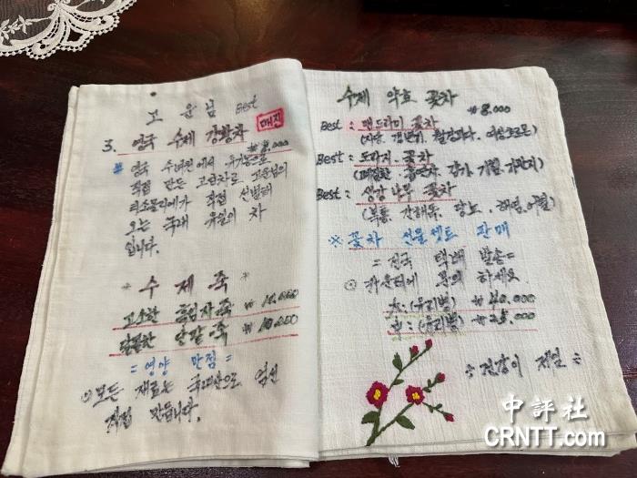 “待佳人來時路”茶館。手工製作的菜單,綉有花紋,頗為雅致。(中評社 崔銀珍攝)