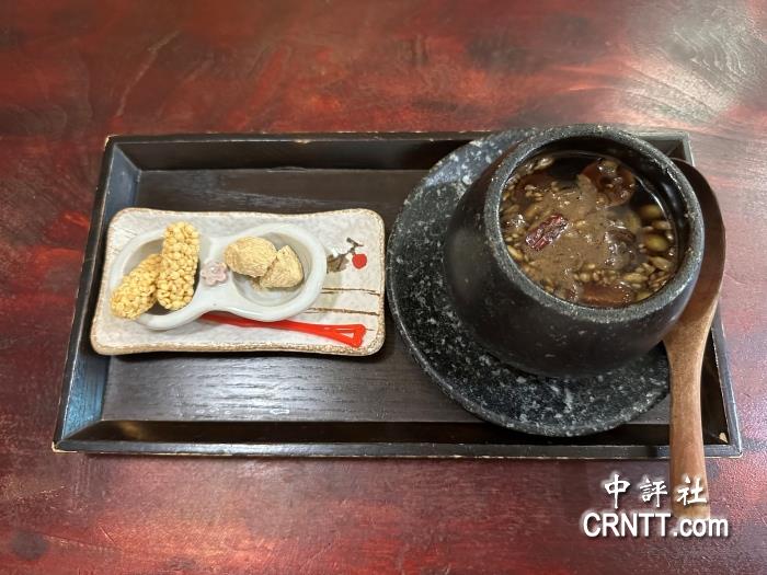 “待佳人來時路”茶館。亞麻籽與無花果制成的韓式茶點與雙和茶。(中評社 崔銀珍攝)