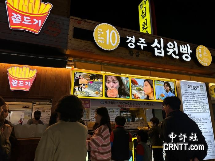 皇理團路內的慶州“十元面包店”。(中評社 崔銀珍攝)