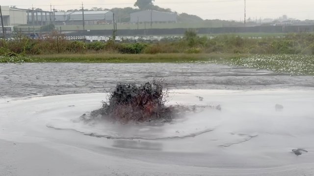 屏東縣知名景點“萬丹泥火山”12日噴發情況,氣體伴隨泥漿噴出、伴隨轟隆轟隆聲。(圖:民進黨籍屏東縣議員許展維提供資料照)