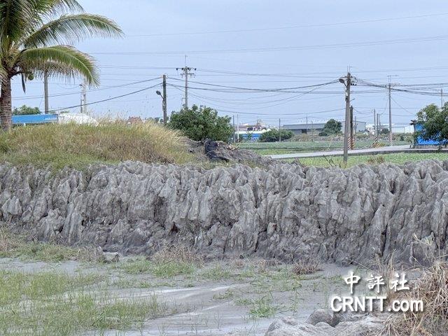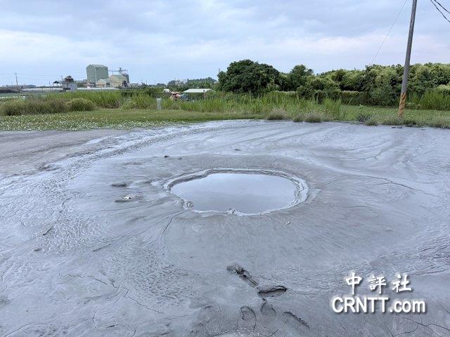 屏東縣知名景點“萬丹泥火山”12日剛噴發結束,農地溝渠可見溢出的泥漿。(中評社 蔣繼平攝)
