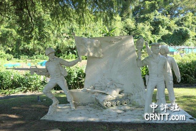 兩蔣文化園區西北邊側有一座仿金門太武山岩石上的“毋忘在莒”紀念碑銅像。(中評社 盧誠輝攝)