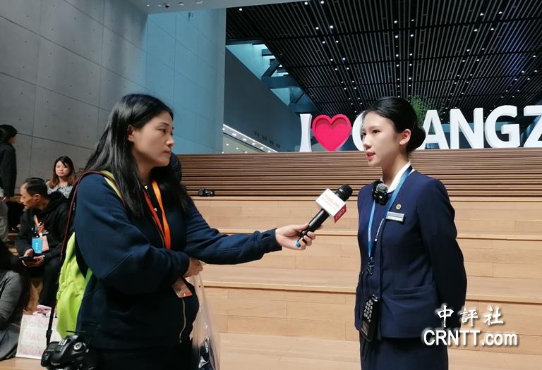 採訪廣州市都市計劃展覽中心導覽人員。(中評社記者攝)