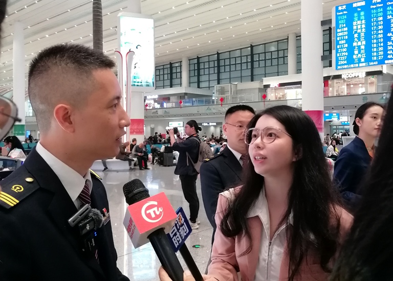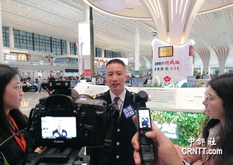 採訪廣州白雲站工作人員。(中評社記者攝)