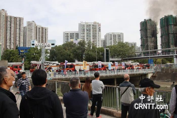 截至27日下午3時,受影響的7座大樓中,有4座的火勢已大致救熄,另外3座的火勢已受控(中評社 盧哲攝)